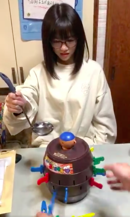 ▼一般玩海盜桶的時候,都是插到不確定的洞裡,海盜小玩具跳起來的那個人就算輸。佐倉ちひろ家卻開發出了海盜桶的另類玩法。