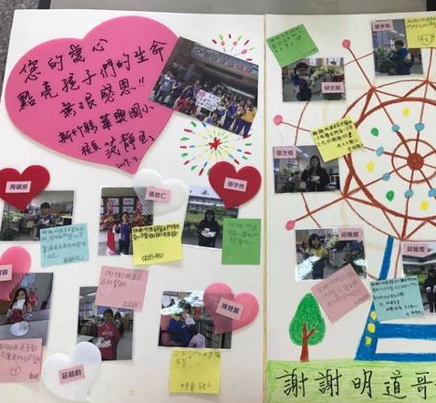 ▼明道默默資助孩子愛心早餐多年,卻不願意公開接受表揚。小學校長帶領孩子們寫下感謝卡向他表達自己的心意,同時勉勵孩子們未來也能向明道看齊。