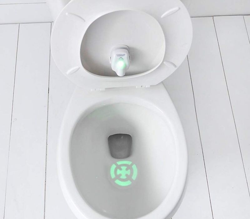 ▼「Toddler Target」是一款專門訓練如廁用的投影機。將它安裝在馬桶蓋上,綠色的目標就會投射到馬桶裡。孩子可以瞄準目標,慢慢掌握「紓解」力道。