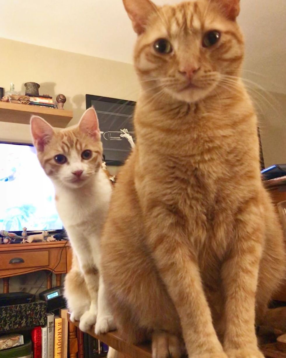 ▼Cru是一隻很友好的小貓,來到Justin家後很快跟這裡的貓貓狗狗成為了朋友。特別是橘貓Ollie,簡直把Cru當成自己的小孩來對待!