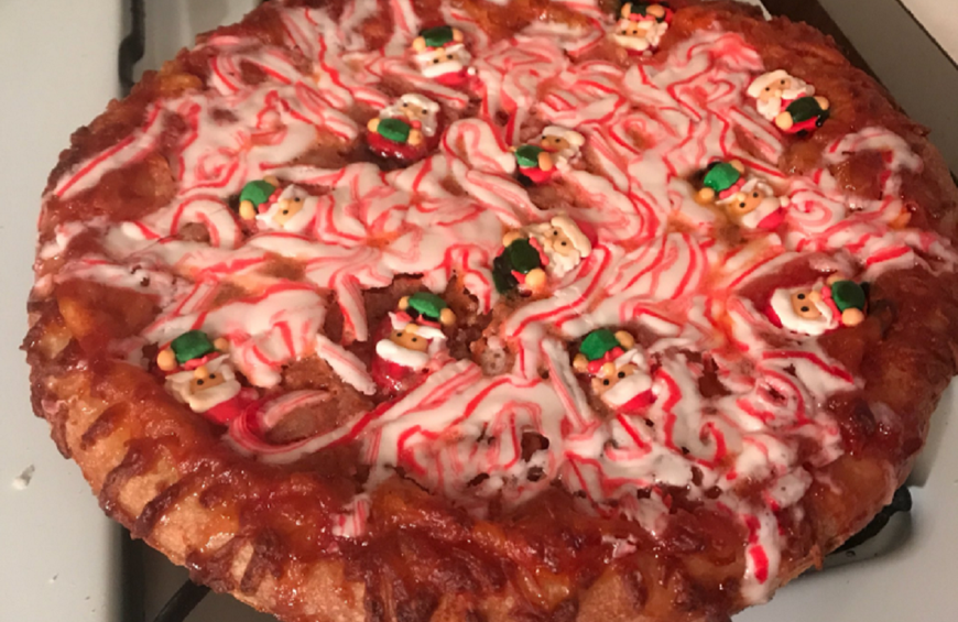 ▼更扯的是,竟然有人把糖果也丟到披薩上面?!