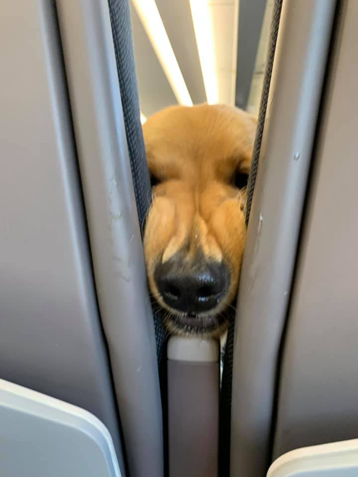無聊阿金上機「搭訕前座乘客」 一聽「主人關鍵音」忙擠椅縫:是不是有零食?