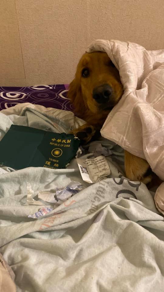 ▼原PO表示自己當時是計劃和家人出國遊玩,下班後準備要訂機票時卻發現Kimi把護照咬碎!