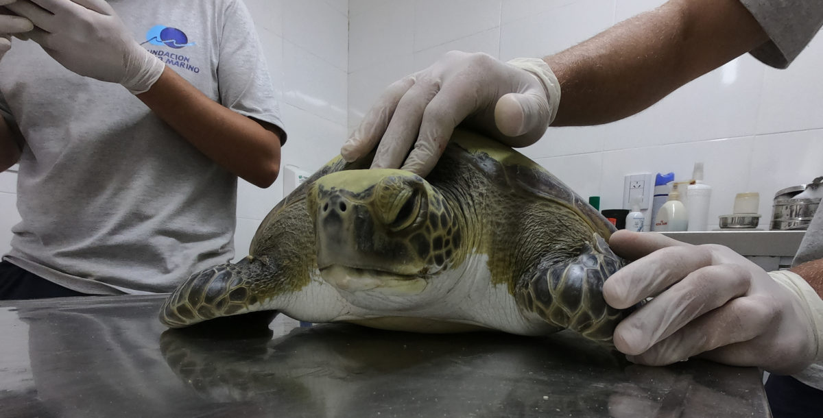 ▼Ubieta將這隻綠蠵龜送到當地的海洋中心,獸醫為牠照X光,發現牠的消化道裡有很多塑膠垃圾。經過治療,綠蠵龜陸陸續續將塑膠製品排了出來,總重量約為14g。