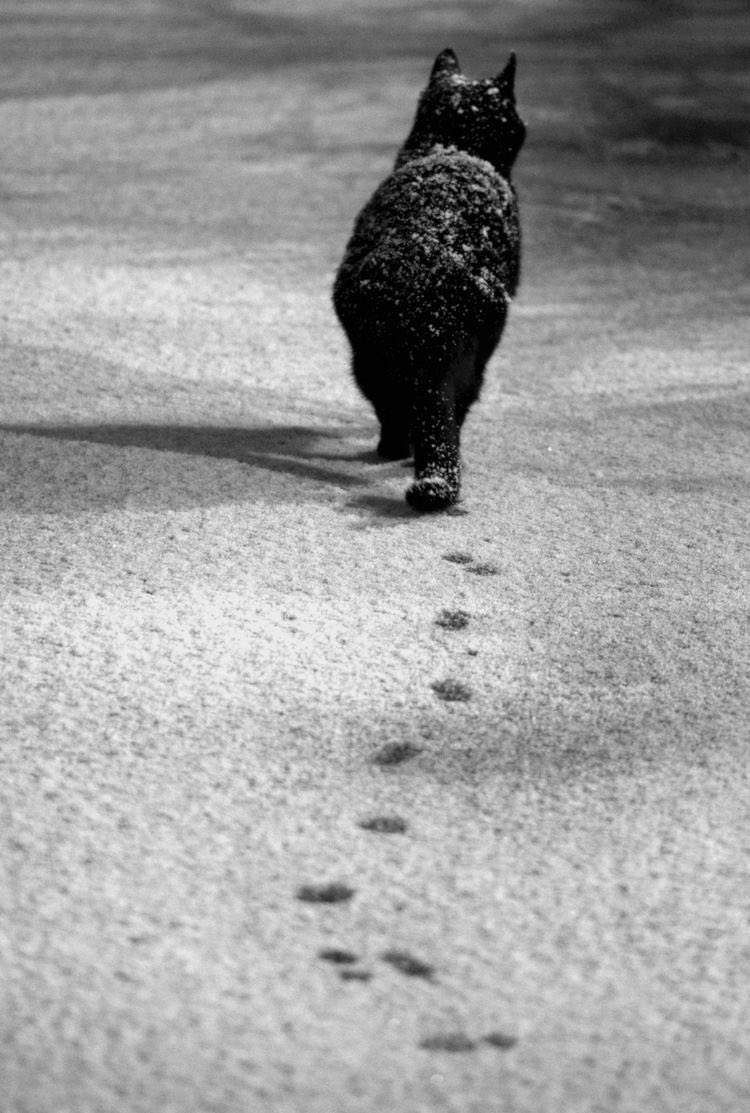 ▼貓咪的足跡全部排列在一直線上的腳步~
