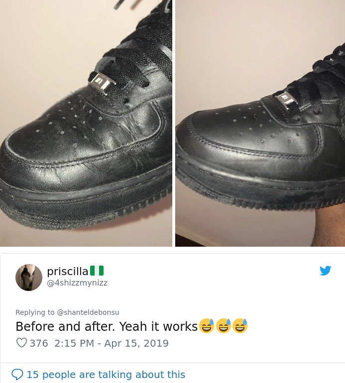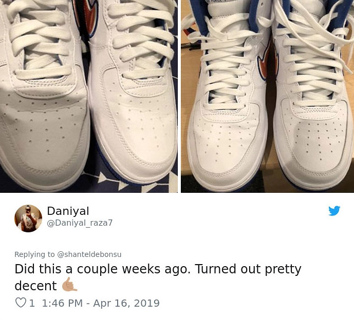 ▼推主Shantel De Bonsu分享了自己的小妙招。愛穿球鞋的她經驗豐富,輕輕鬆鬆就把寶貝鞋子上的摺痕消除了。
