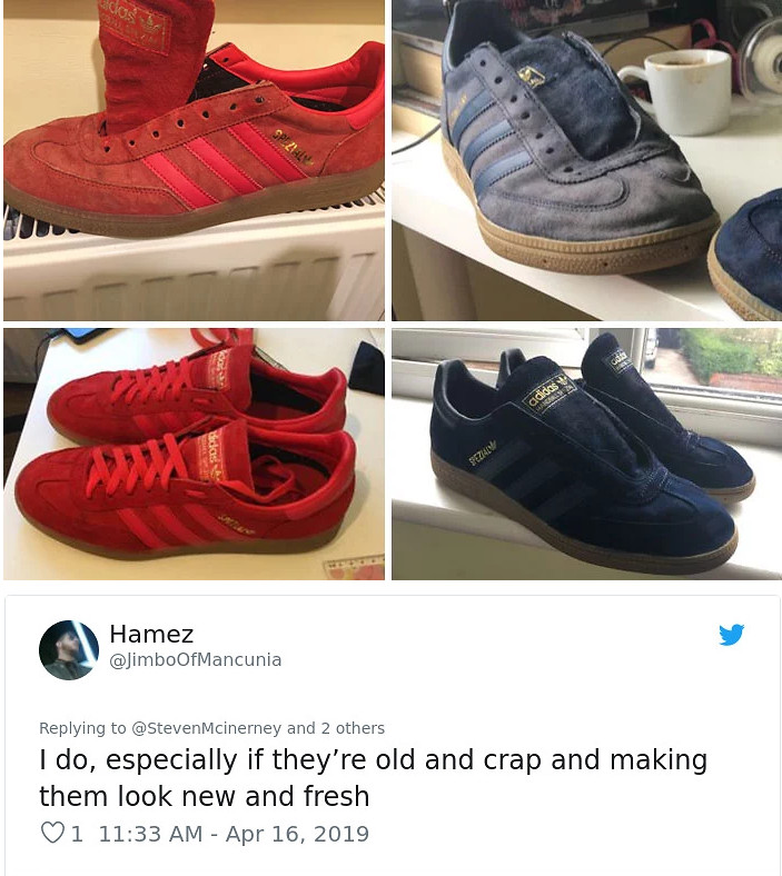 2020年02月05日球鞋時尚又好穿,是很多人的最愛。每次潮牌推出限量鞋款,都會引發瘋搶。但不管什麼品牌的鞋子,穿久了鞋面上都會出現一條條摺痕。有沒有什麼方法能夠把摺痕消除呢?還真的有!國外一位推主分享了一個簡單的方法,只要3個步驟就能讓舊球鞋煥然一新。