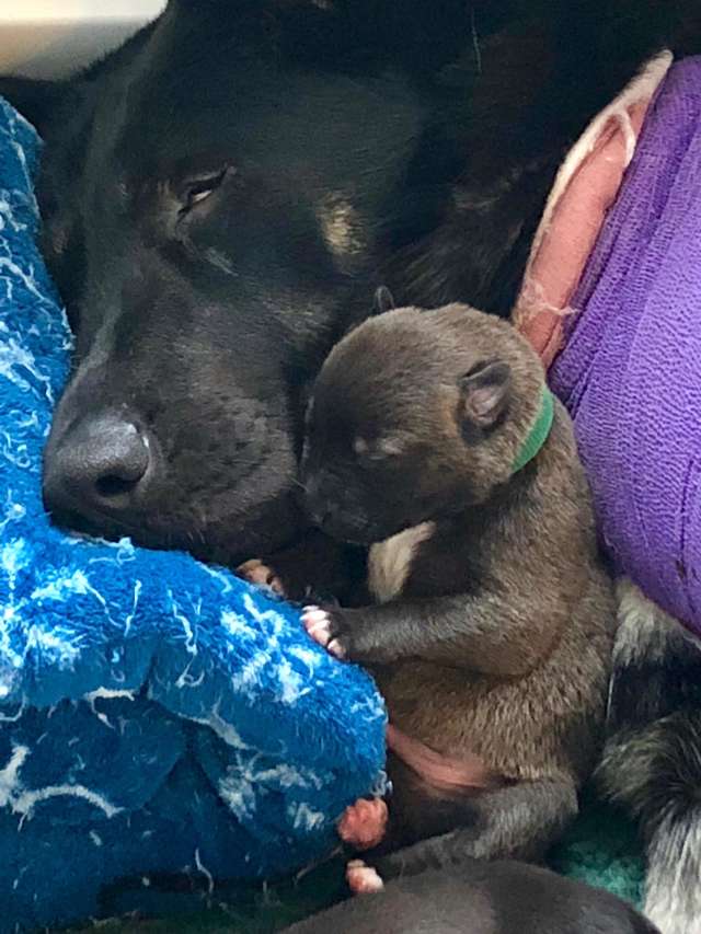 ▼Murphy跟著好友上車,確定這些人會幫忙後才放鬆下來。牠將頭靠在Marley的肚子上,似乎在用自己的方式告訴牠:「不用怕,我會陪著你。」Faith將狗狗帶到獸醫院,檢查後發現Marley骨折,肚子裡還有11隻小狗。牠接受治療期間,Murphy全程陪伴在牠旁邊。