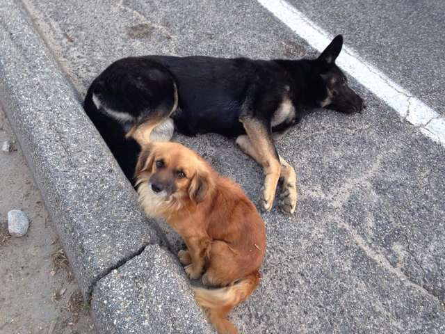 狗媽媽躺路邊不能動 汪好友守在身邊:拜託你們救救我的朋友