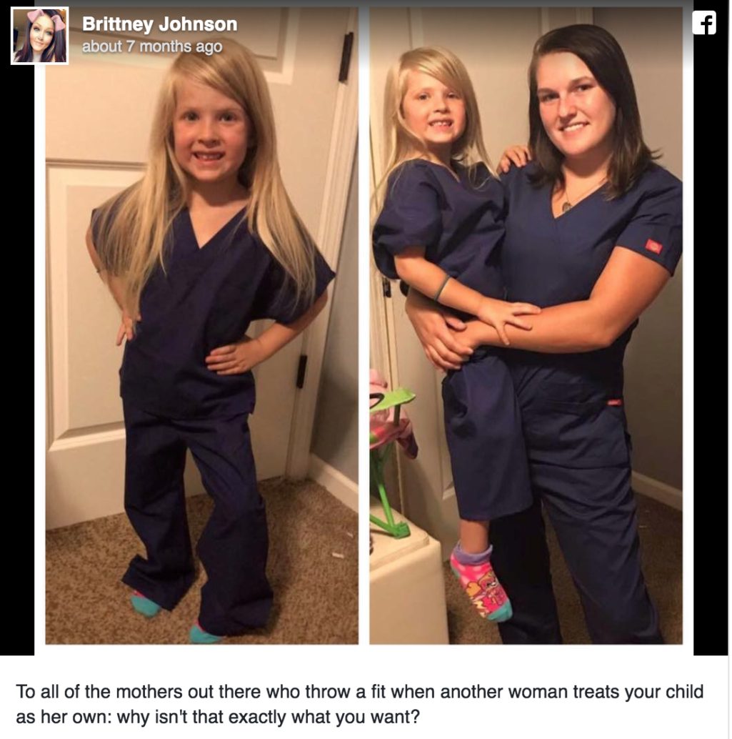 ▼1.這位媽媽感謝前夫的妻子Kayla:「Kayla就像上天給予我的禮物,她讀護理學校後,我的女兒也對護理學校很感興趣,於是Kayla就為我和女兒買了這件衣服。」