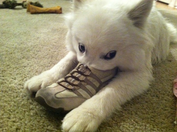 ▼各種材質、各種款式的鞋子都可以成為汪星人的「磨牙玩具」。