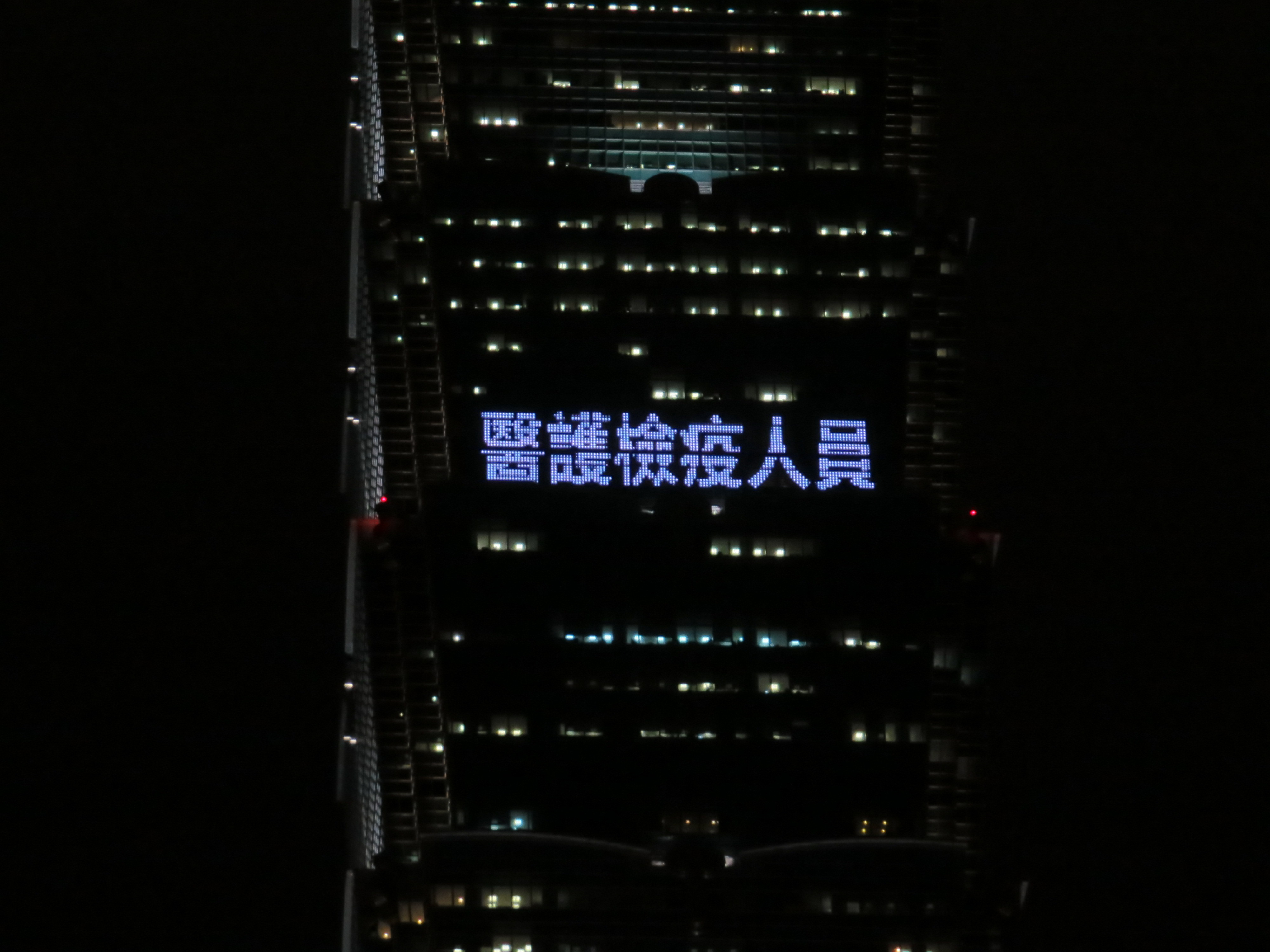 ▼台北101連2天(2/5、2/6)從晚間6點30分起,一直到晚上10點,於外牆點燈感謝台灣所有的防疫人員。