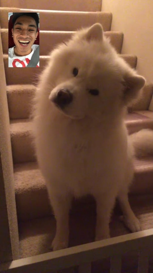 ▼剛開始狗狗只聽到主人的聲音,沒注意到視訊螢幕。牠一臉疑惑歪頭盯著手機,看了好一會兒才發現主人在裡面跟自己講話。