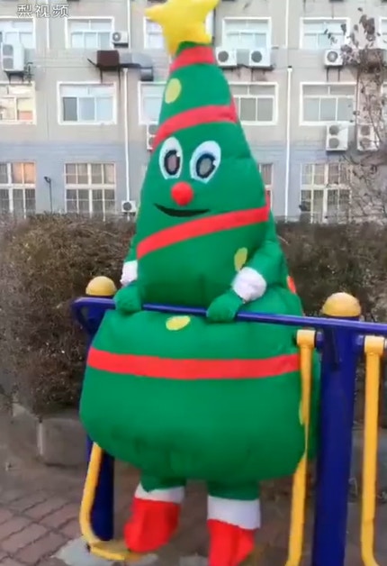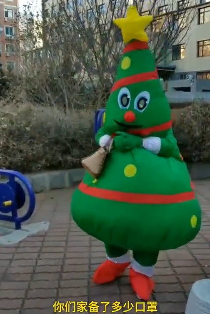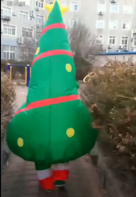 全套防疫!陸大媽想到絕招「充氣服當防護衣」 化身行走聖誕樹外出~