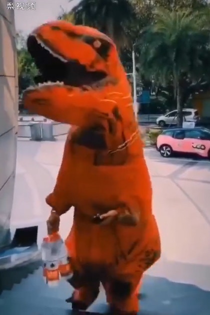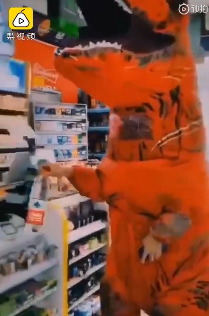 ▼大媽表示,她之前在網路上看到有人穿龍造型的服裝外出購物,看起來很好笑。她在充氣服裡還戴著口罩,非常安全。
