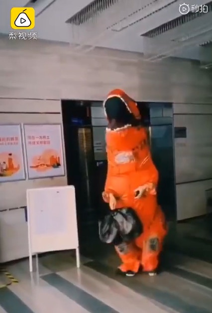 ▼那位網紅介紹說,卸下充氣服後放到浴缸裡清洗,非常方便。大媽覺得穿充氣服防護是個好辦法,於是讓女兒幫自己買了一件聖誕樹造型的充氣服。
