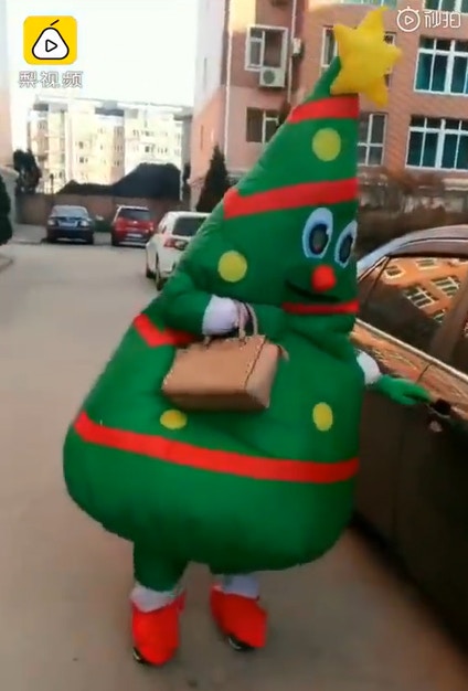 2020年02月07日武漢肺炎的影響還在擴大,很多民眾開始自創防護方法。遼寧一位幽默感十足的大媽竟然讓女兒幫忙買變裝服,當成保護衣穿上身,外出時變身「行走的聖誕樹」,大家看到這一幕都笑翻了。
