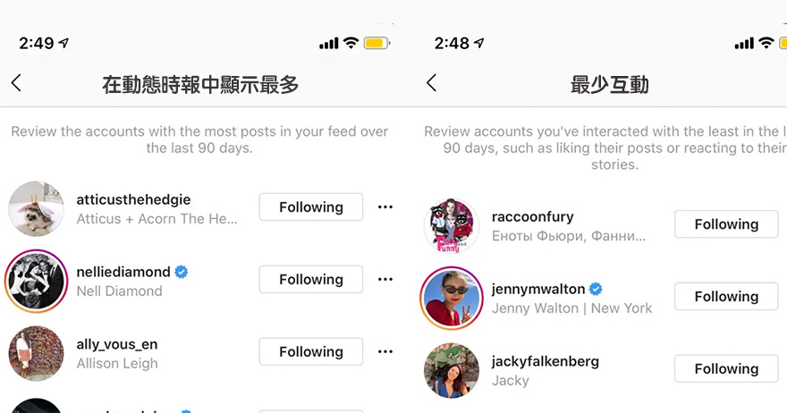 ▼這個功能對習慣定期整理追蹤名單的人來說幫助很大,想要刪除一些與你平常互動不多的帳號馬上就能決定。