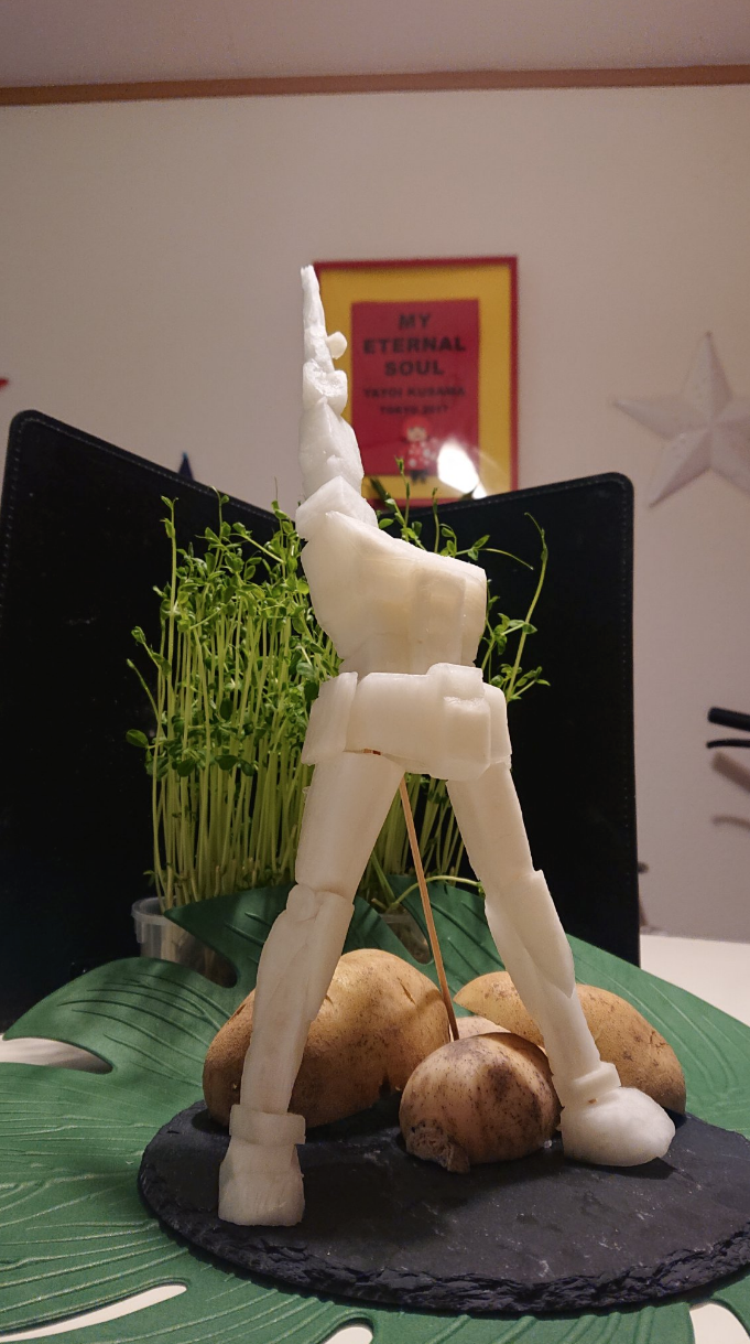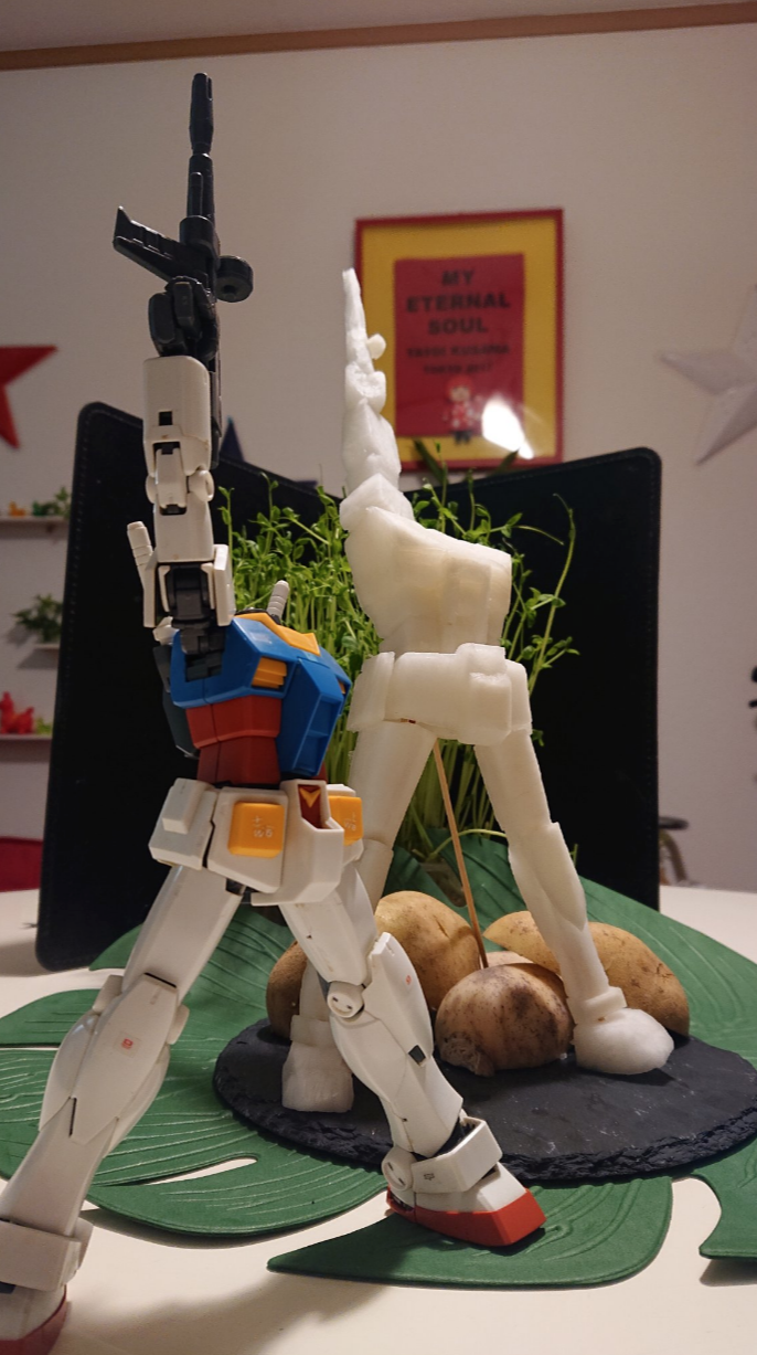 ▼老媽只用大根(白蘿蔔)就做出鋼彈的形象!高度重現經典場景!