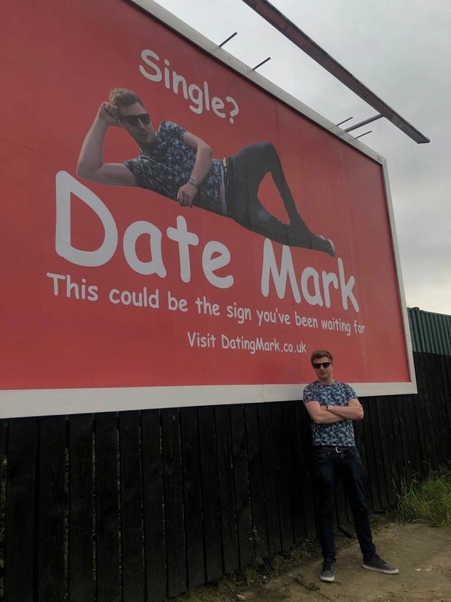 2020年02月13日你的情人節已經準備一個人過?外國一名單身狗男子 Mark Rofe 已經30歲,但是他卻在一年前恢復單身,一直到現在都找不到另一半。某次跟朋友外出喝酒時,他居然有一個大膽的想法,「我對他們開玩笑說,我會把自己模樣印到大廣告牌上徵女友」。