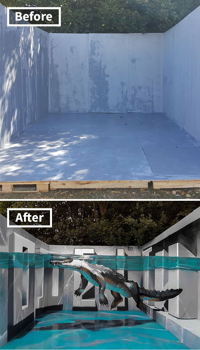 2020年02月14日說到街頭塗鴉藝術,很多人想到的就是牆壁上抽象的噴漆繪畫。但葡萄牙藝術家Sergio Odeith卻將它提升到了不可思議的程度。他用3D立體繪圖技法,在城市的角落留下一幅幅令人驚艷的作品。那些非常立體的作品太逼真,第一次看到的人甚至會被嚇一跳,忍不住想要逃跑。