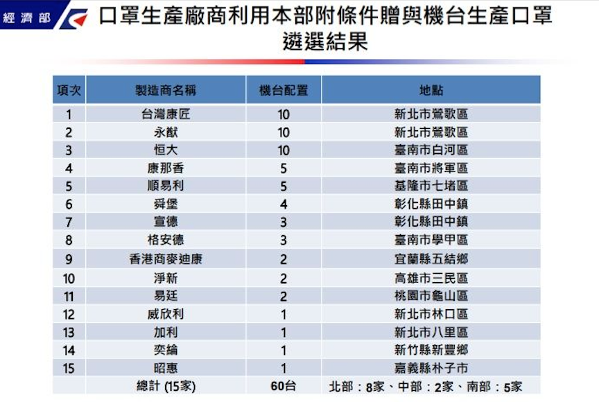拚日產一千萬片!經濟部新建60條產線 公布「15家獲選口罩廠商」