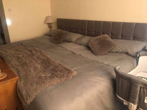 ▼這位媽媽買了2張帶有床墊的沙發床。它們能完美拼在一起,中間沒有縫隙,不用擔心掉下去。這兩張床拼好有寬度足足有2.7公尺,只花了440英鎊,還帶有儲物空間,比客製化大床要便宜得多。