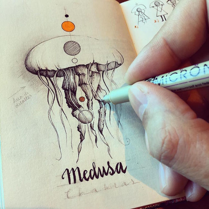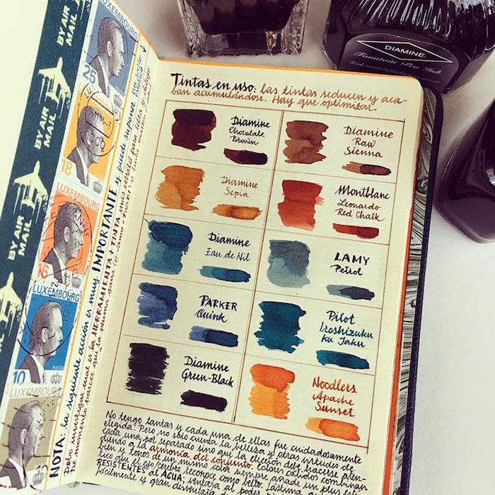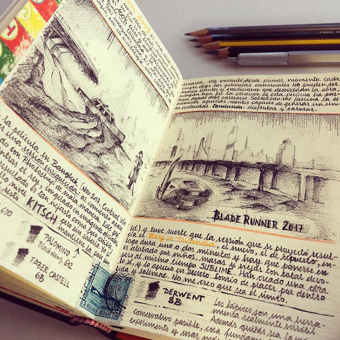 ▼Jose Naranja原本是一名航空工程師,後來他辭職後開始到世界各地旅行,並將旅途中的所見所聞都紀錄在Moleskine筆記本上。從2005年以來,他畫了整整12個筆記本,還重新整理、裝訂這些本子,讓它們看起來更精緻。