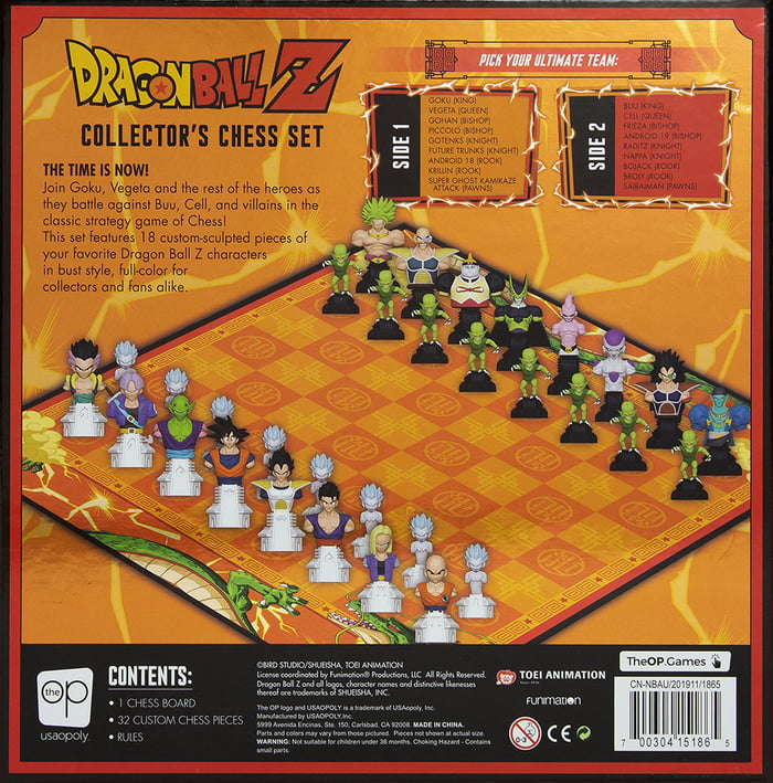 2020年02月21日《七龍珠Z》的粉絲快點看過來!美國桌遊品牌「usaopoly」推出了一款「七龍珠Z」主題西洋棋組,直接把棋子做成了動漫角色的造型。代表正義的角色跟反派們分別變成黑白棋雙方,玩起來更有意思。這不僅僅是下棋,還是正義與邪惡之爭~