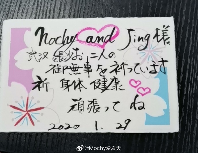 2020年02月27日新冠肺炎疫情持續延燒,其中武漢的情況更引發全世界的關注。武漢一名女子和朋友突然收到日本寄來的口罩物資,剛開始她覺得很奇怪,不知道是誰寄來的,後來才發現原來是3年前去東京旅行時,租和服店的婆婆寄來的。婆婆不僅寄給她口罩,還有巧克力和暖心卡片,並特別用中文寫上「身體健康」,這讓她跟朋友都很感動。