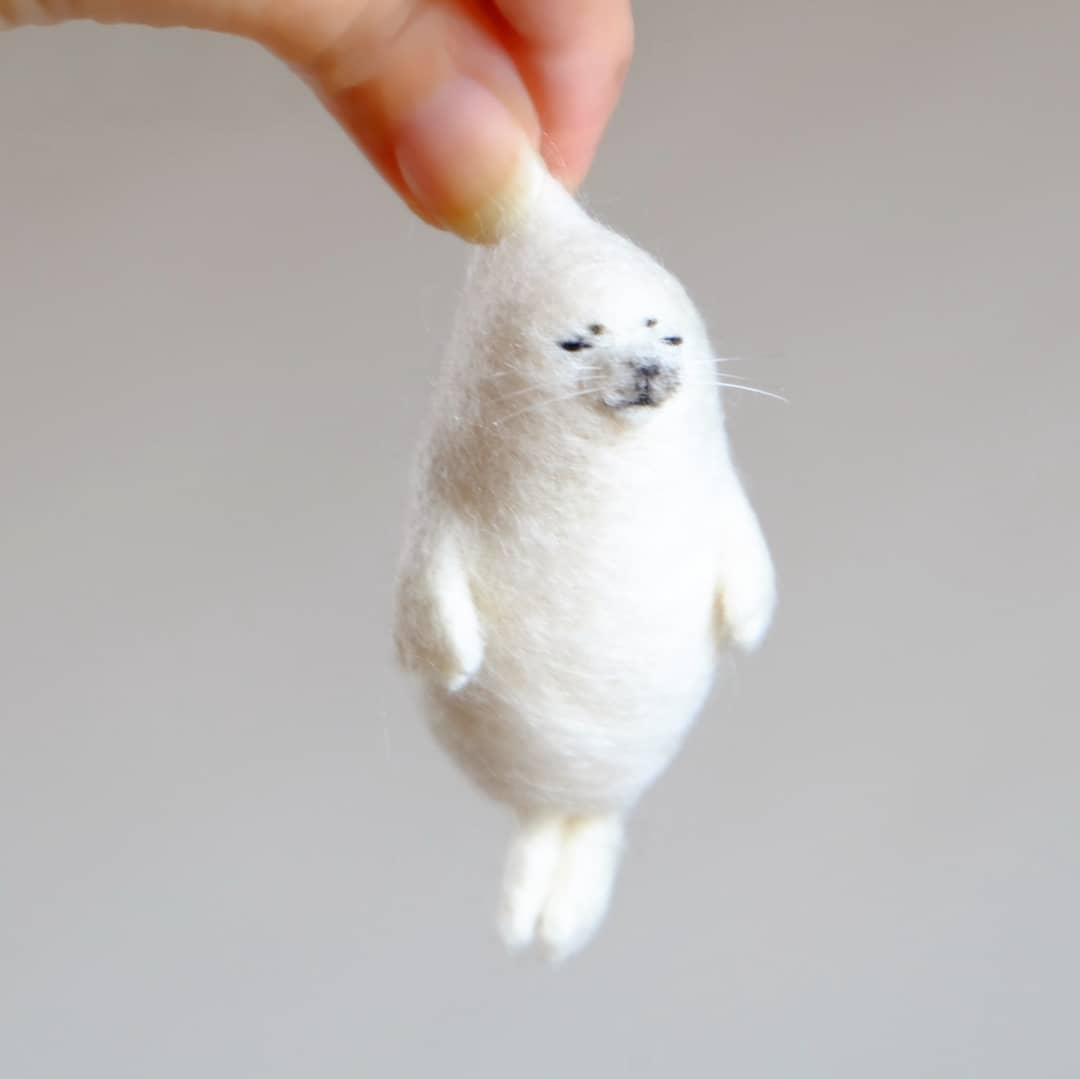 捏住軟綿綿的後頸皮~ 11款手作「動物羊毛氈」海豹變成麻糬啦♡