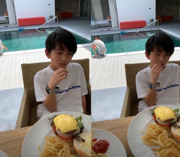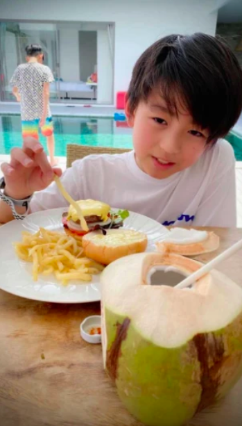 ▼大兒子Lucas長得更像謝霆鋒,特別是眉眼,簡直是謝霆鋒的復刻版。二兒子Quintus臉型偏圓,五官更加精緻。最近網路上流傳著一組Quintus用餐的照片,他只穿著簡單的白T,卻靠臉提升了時尚感。
