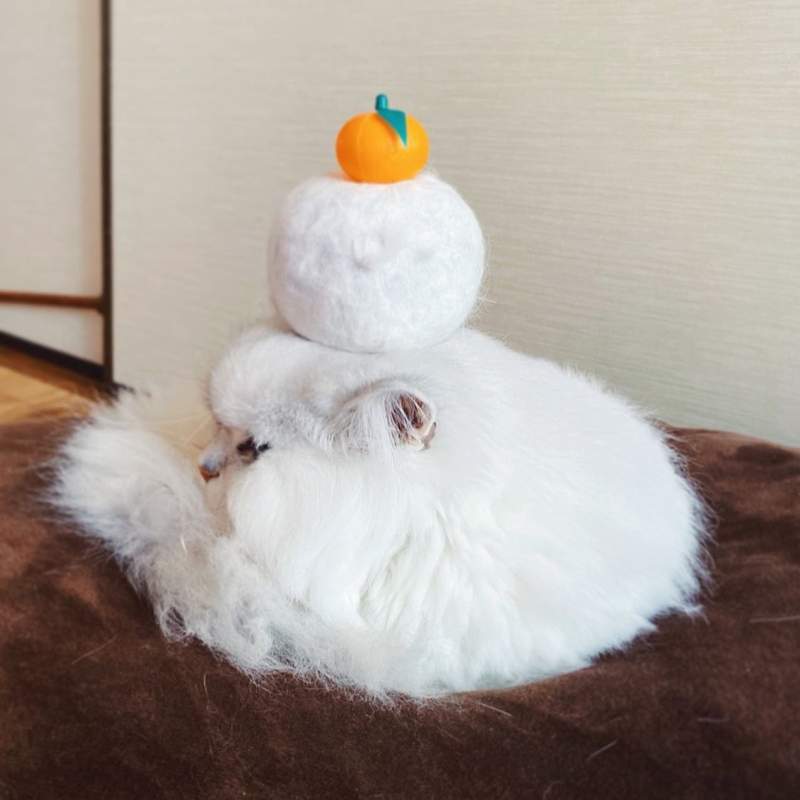 ▼這個毛球太大啦,貓咪站在旁邊都顯得體型嬌小了呢。