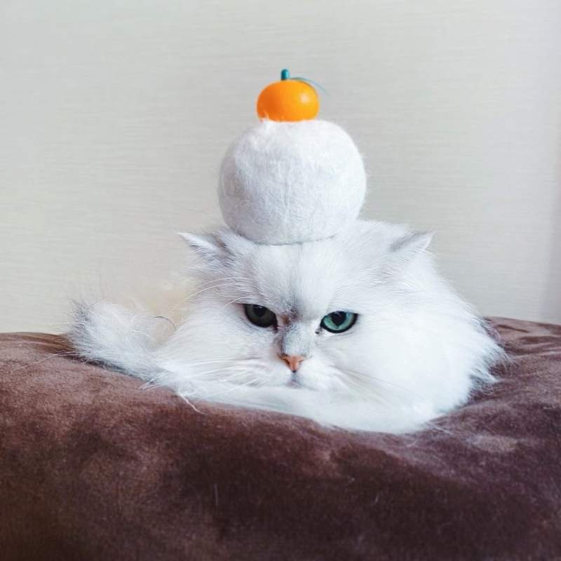 ▼白貓頭頂白毛球,就像小雪山一樣。