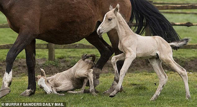 ▼母馬生下同卵雙胞胎的概率僅有百萬分之一,Destiny創造了奇蹟。雖然牠第二次生下的寶寶一雌一雄,但還是讓人驚嘆不已。