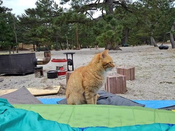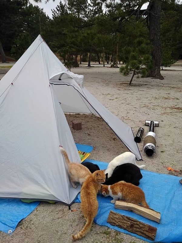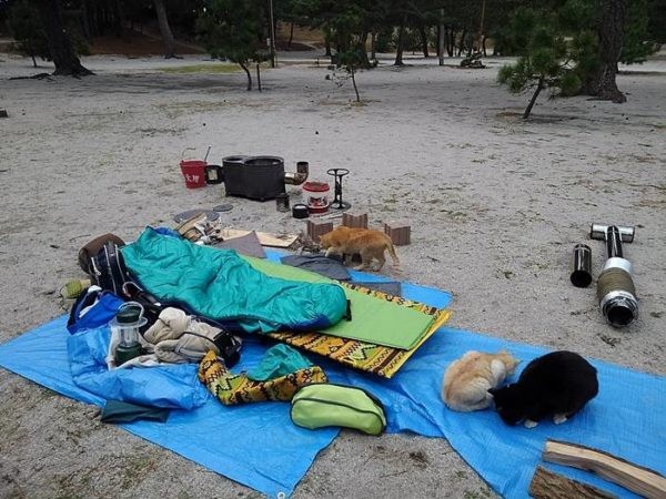 ▼網友結束露營準備離開的時候,傲嬌的貓咪非常不捨。他只好煮魚肉大餐招待貓咪們,跟牠們約定以後來露營時再見面。
