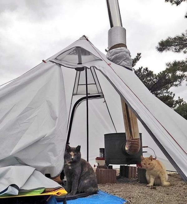 ▼貓咪們不僅要住在帳篷裡,還要分享他的食物。白吃白喝白住,真的很有惡霸氣質!