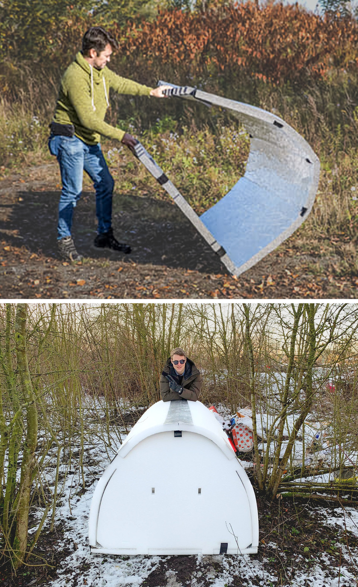 捲起來就能用…好心工程師設計「攜帶式雪屋」 街友待裡頭溫度↑15°C