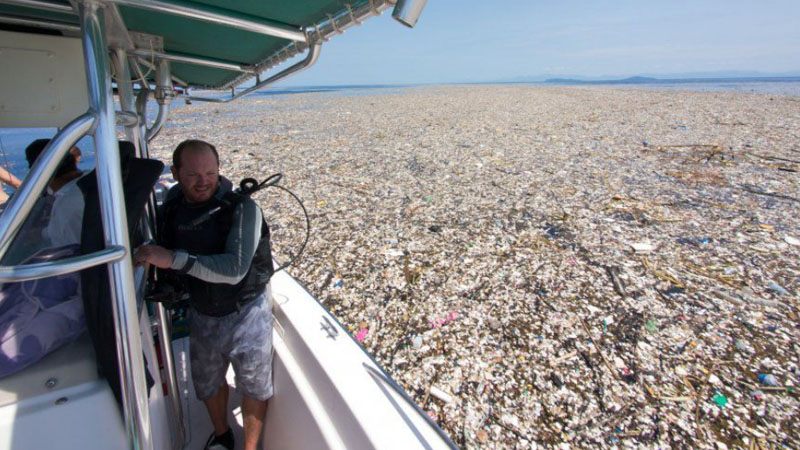 ▼Caroline表示,他們在塑膠垃圾中航行了8公里,垃圾帶有些地方足足有3公里寬。數不清的塑膠垃圾匯聚在這一海域組成垃圾帶,一眼望不到盡頭。「塑膠垃圾一旦進入海洋就不容易清理。清理起來成本太高了!」