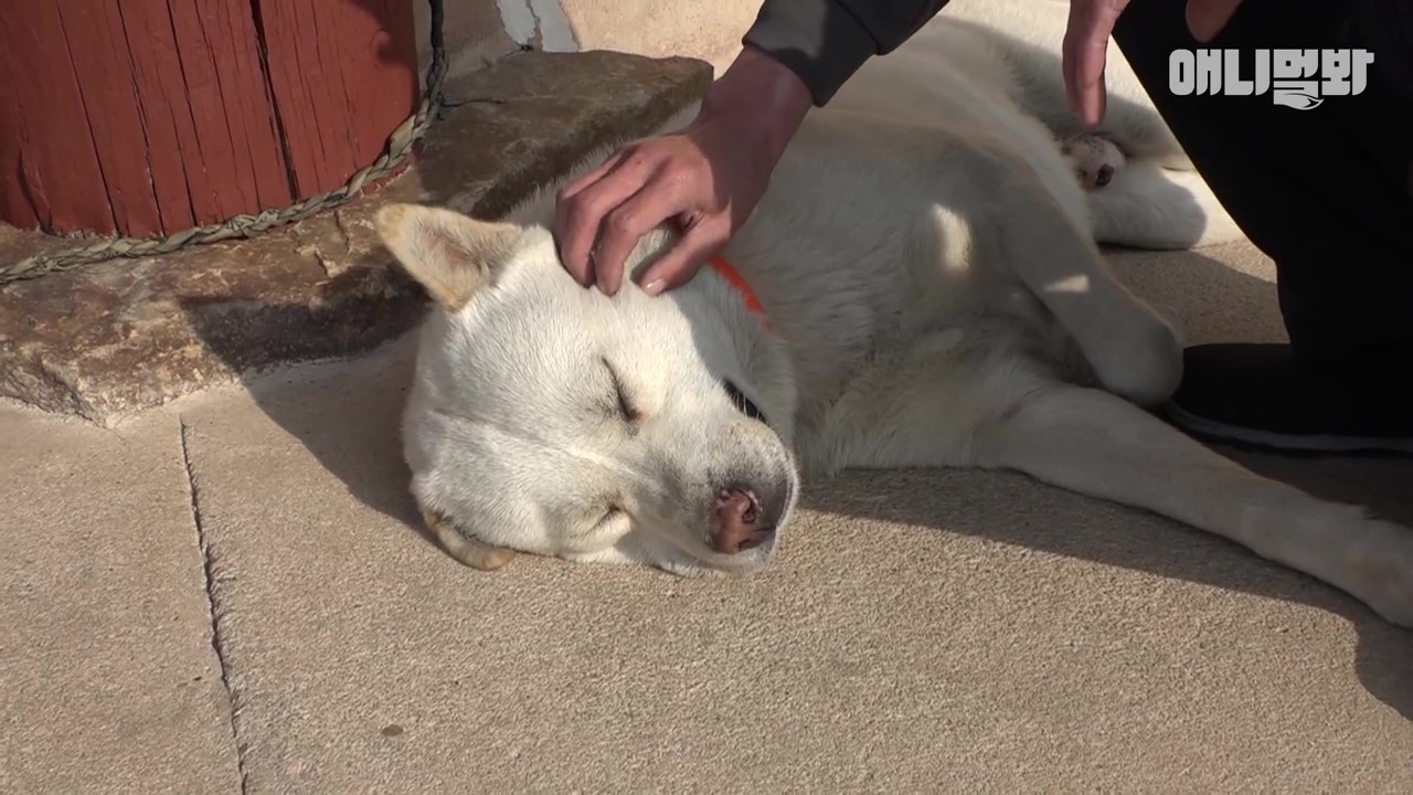 ▼回到寺廟的Simdol繼續扮演「清心寡食」的狗狗,接受大家的摸摸。