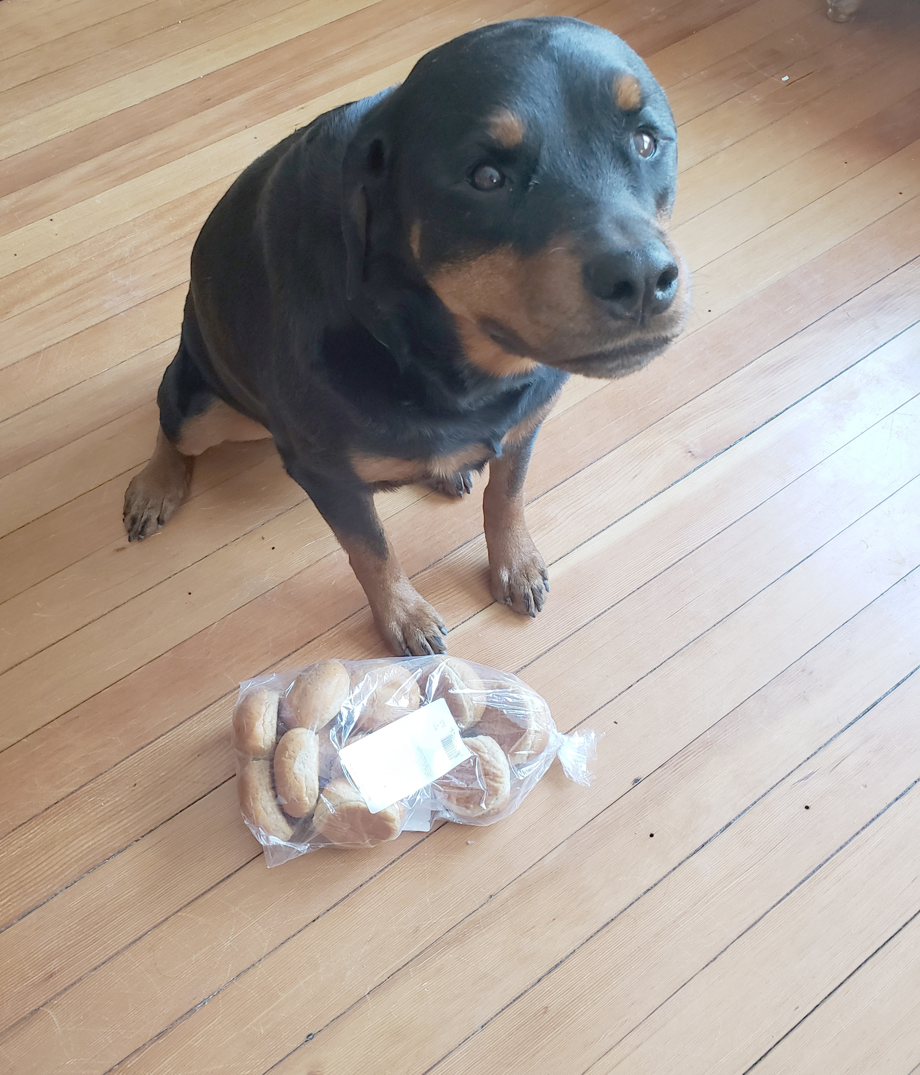 2020年03月14日很多狗狗都有獨特的習慣。國外女子Katrina Frank養了一隻6歲的羅威納犬,叫Jakey。Jakey非常忠誠,自認為是家中的守護神。每次主人不在家,Jakey都會把家中的麵包找出來,然後守護在旁邊。牠要保護好人類的寶貝~