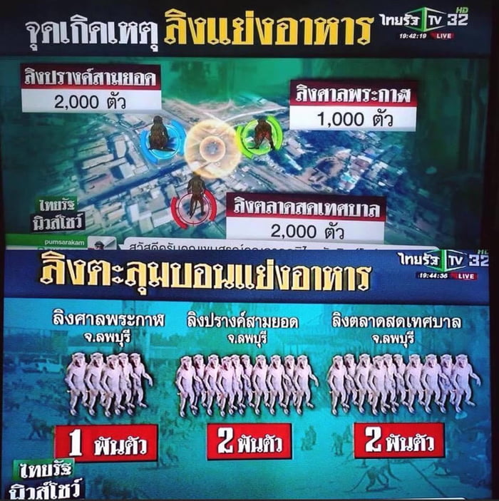 ▼後來泰國媒體報導了這件事。原來華富里生活著很多猴子,被拍到搶食的猴子來自3個不同的地方,牠們盤據在神廟前找食物。有善心人給神廟捐贈酸奶,給棲息在神廟內的猴群吃。神廟工作人員把酸奶放到平時投食的地點後,竟然引來3群猴子爭奪。