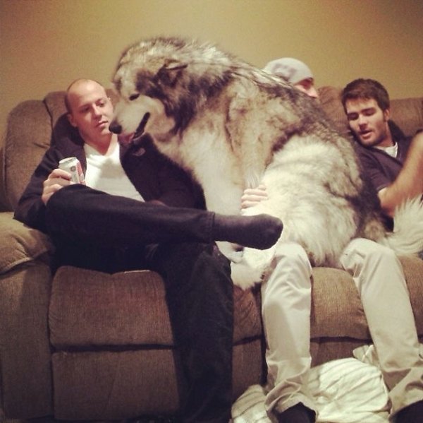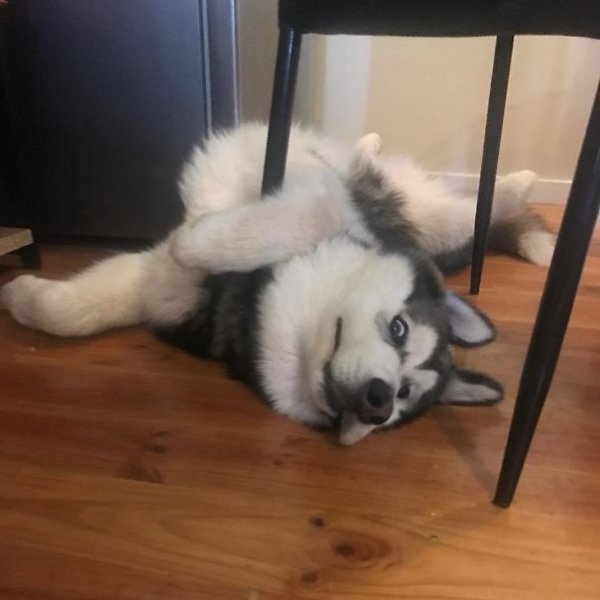 ▼陪爸爸跳舞的可愛阿拉斯加雪橇犬。