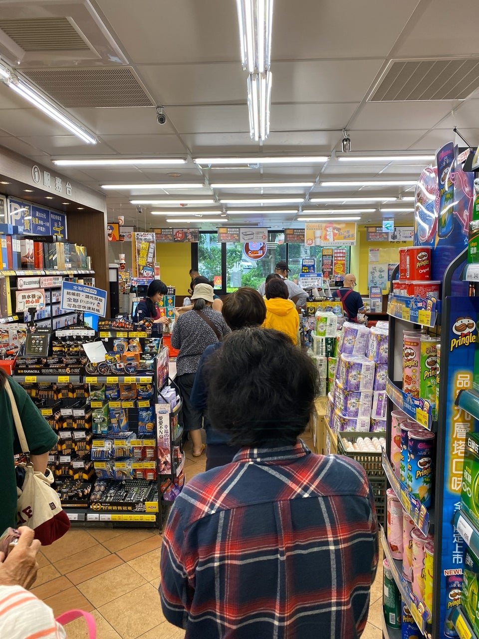 ▼全聯福利中心這段期間人潮絡繹不絕,量販店衛生紙、日用品、泡麵、罐頭、飲用水都是購買大宗,加上恰逢促銷檔期,為了舒緩顧客人龍,從進貨、補貨上架、結帳等,員工忙到幾乎沒有休息時間。