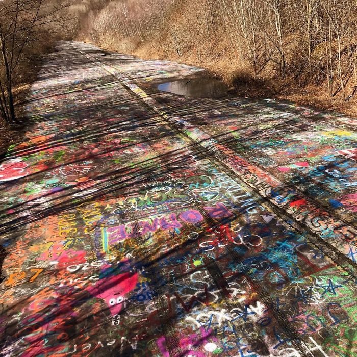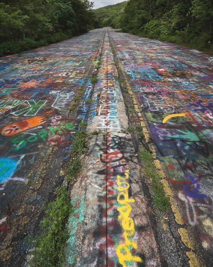 提起廢舊公路,你會想到什麼?大概是末日片中那種荒涼的場景吧。但美國賓夕法尼亞州有一條廢舊公路,卻變成了美麗的景點。公路上全都是色彩斑斕的塗鴉,近看充滿趣味、遠看就像一條彩帶,就連電影《沈默之丘》都曾在這裡取景~