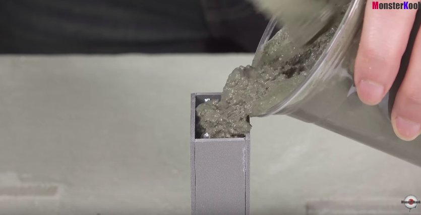 ▼用水泥把內部填滿,晾乾後再把模子殼剝掉。