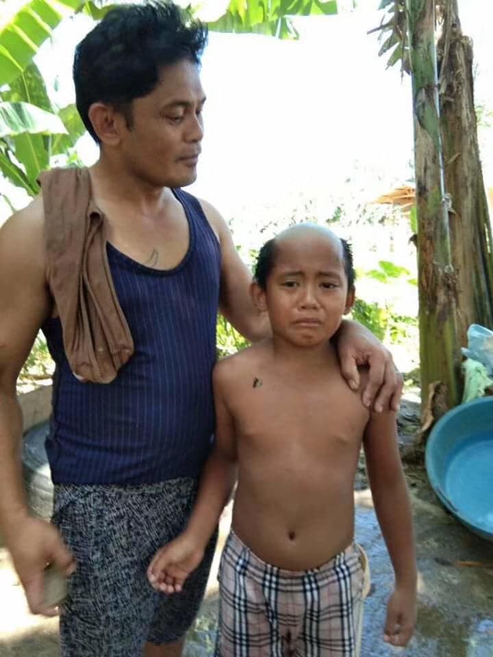 ▼兒子看到自己的新髮型後既委屈又無奈,這下就算爸爸要求他出去玩,他都不會出門了。
