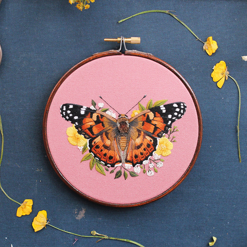 ▼為了提升自己的刺繡水平,Emillie不僅每天練習,還大量閱讀昆蟲學插圖、參考各種文獻。比如要刺繡蝴蝶時,她會先瀏覽上百張照片,看很多相關影片,通過Photoshop畫出蝴蝶的樣子,多次修改到滿意再動手。