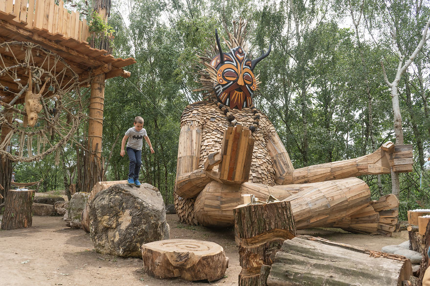 ▼Thomas曾在世界各地的叢林中造夢,這次他來到比利時,在叢林中留下了一座名為《The 7 Trolls and the Magical Tower》的作品。這個作品由7個7公尺到18公尺高的巨人,還有一座17公尺高的高塔組成,Thomas為巨人們創造了有趣的背景故事。