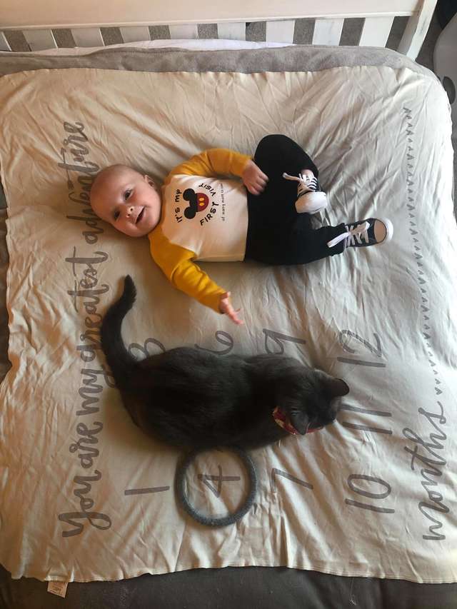 ▼Jeannie表示,家人帶小寶寶出門時,Grace會擋在門口,不讓他們出去。他們回家時Grace會第一個跑到門口迎接。以前牠從來不這樣做,都是很高冷地等待主人過去跟牠玩。Grace最愛跟小寶寶挨在一起睡覺,以前不親人的牠變成了世界上最黏人的貓咪。